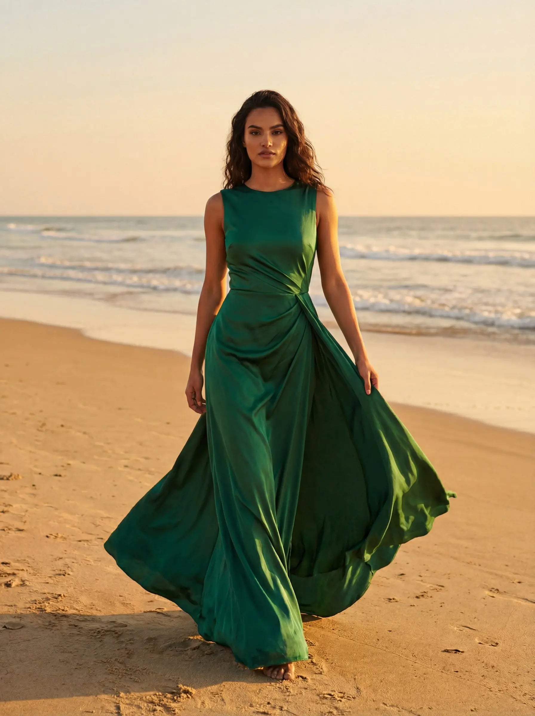 De Celeste Satin Skater-Jurk brengt een verfijnde, moderne vrouwelijke charme met een vleugje speelsheid. De satijnen stof valt soepel en geeft een luxueuze glans die het lichte, wijd uitlopende skater-silhouet extra elegant maakt. De subtiele cowl-neck en dunne bandjes creëren een zachte, sierlijke halslijn die perfect balanceert met de flatterende taille. Ideaal voor een date night, een feestje of elke gelegenheid waarop je moeiteloos chic wilt verschijnen.